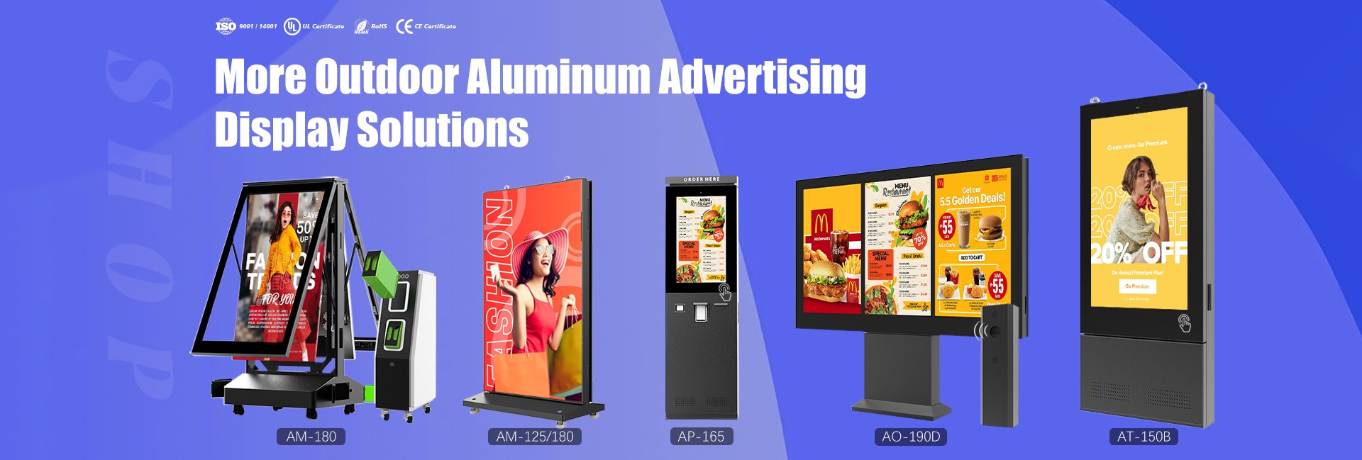 主营产品: 户外高亮度液晶显示器、高亮度液晶窗口显示器、户外发光二极管广告显示器、户外发光二极管广告牌、铝灯箱